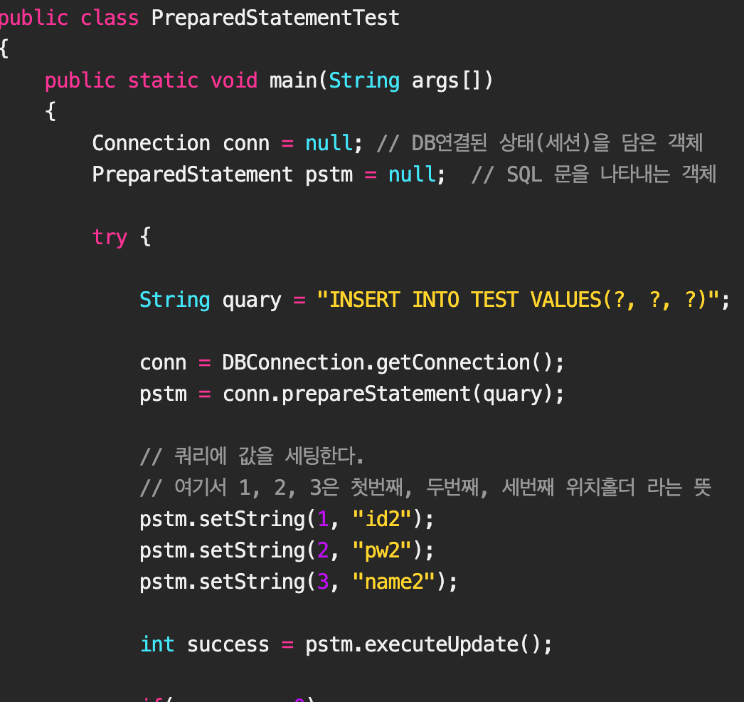 첫번째 방법은 Connection 및 PreparedStatement 를 사용하여 sql를 사용하는 방법이고, 두번째는 하이버네이트를 사용하여 자동으로 완성되는 것을 사용하는 것이다.