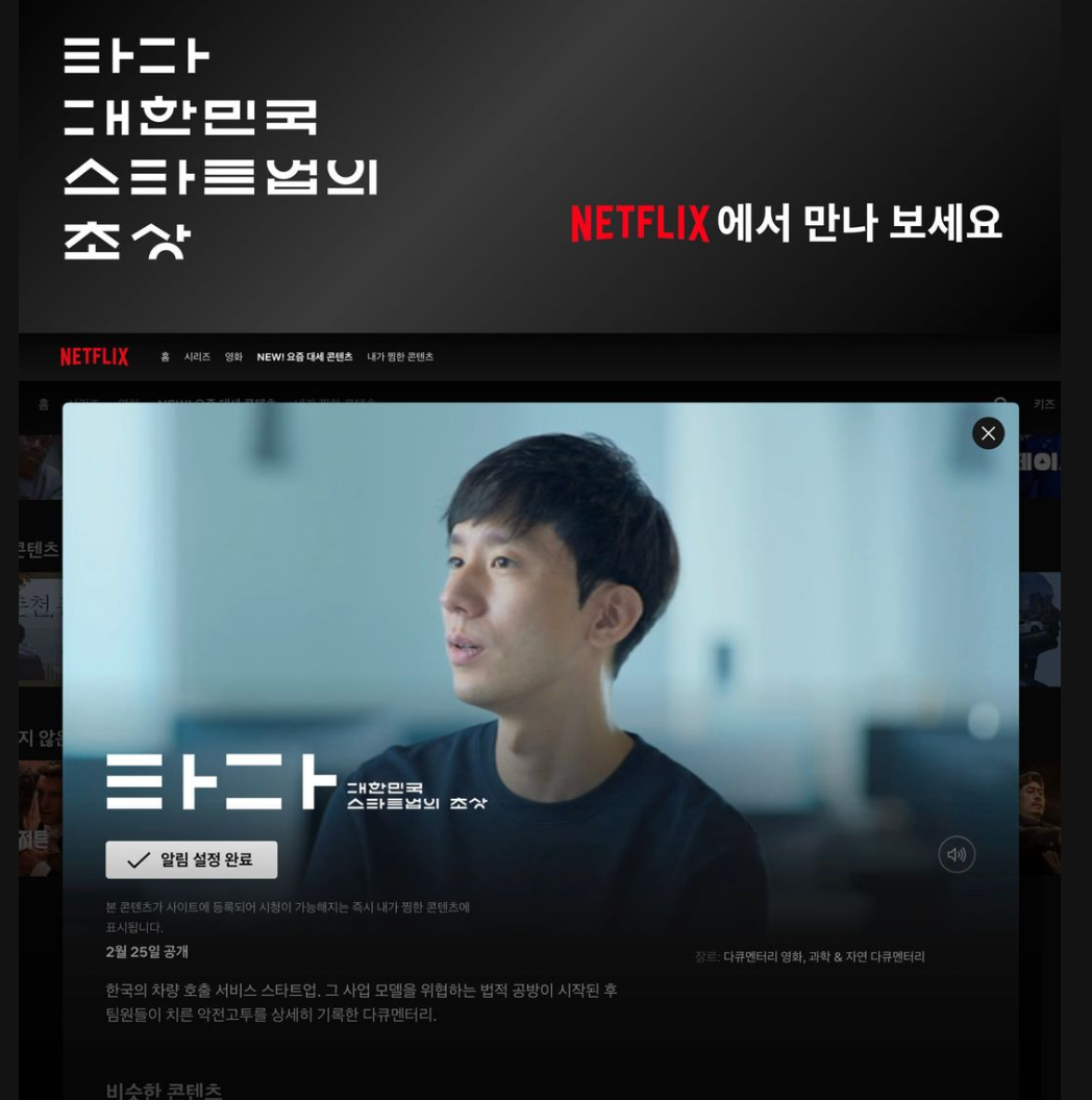 주말에는 코딩이라는 공부를 벗어나고자 넷플릭스에 "타다" 라는 다큐멘터리를 보았었다.