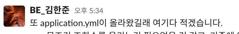 AWS에서 RDS, S3, SMTP 등 여러가지 API key가 붙게 되는데, 노출이 되면 외부에서 공격이 들어와 과금이 발생하는 것을 방지하기 위해 application.yml을 보호 하였었다.