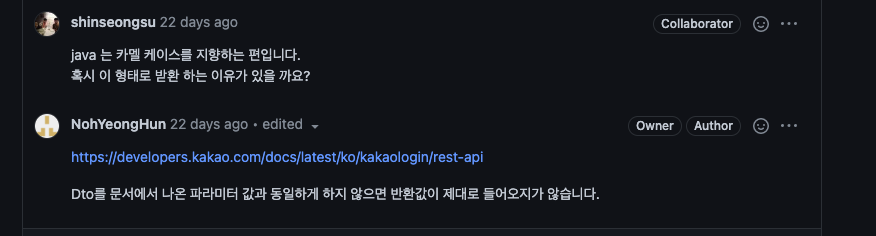 또한, Rest Docs 를 사용하여 프론트분들께 요청값과 응답값을 보여주어 커뮤니케이션을 진행하였다.