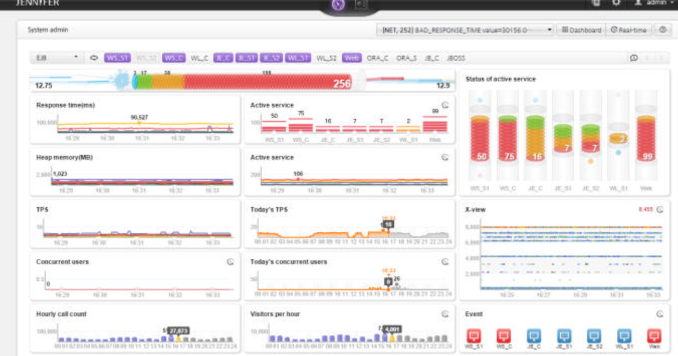 현재 요청되는 요청수와 JVM의 Heap 메모리까지 체크가 가능하고 개인적으로 프로젝트를 할떄 제니퍼 덕분에 Socket이 리소스를 계속 가지고 있어 서버가 요청온것을 다 처리 못하는 일이 있었는데 그것도 제니퍼로 체크가 가능하여 해결했던적이 있다.