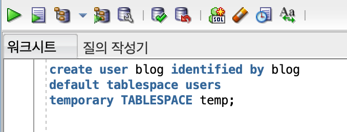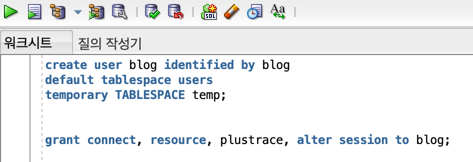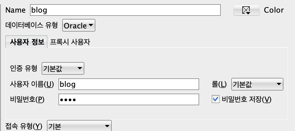 sql Developer에 유저 추가 버튼을 눌러 위에서 만들어준 blog 유저로 접속을 해봅니다.