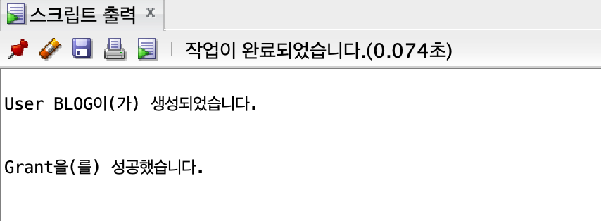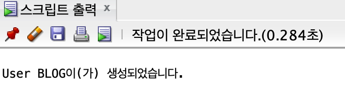 그럼 밑에 스크립트 출력으로 blog 유저가 생성되었습니다. 가 출력 되었습니다.
