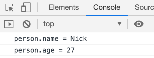 console.log("person.name = " + person.name);