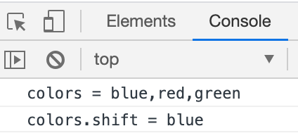 console.log("colors.shift = " + colors.shift());
