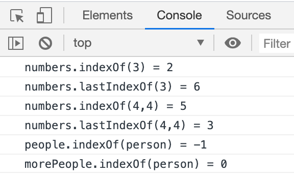 console.log("numbers.lastIndexOf(3) = " + numbers.lastIndexOf(3));