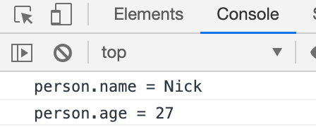 console.log("person.name = " + person.name);