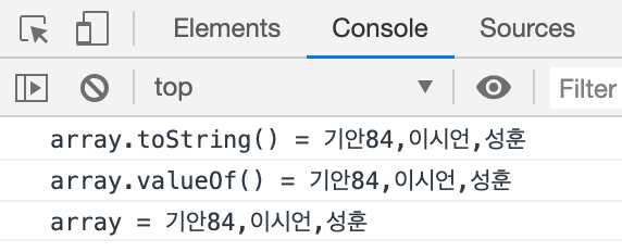 배열을 문자열로 나타낼 수 있습니다.