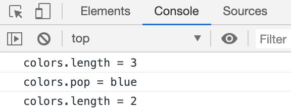 console.log("colors.pop = " +colors.pop());