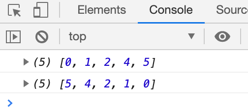 sort() 메서드는 기본적으로 데이터를 정순, 즉 가장 작은 값이 첫번째로 오고 가장 큰 값이 마지막에 오도록 정렬합니다.