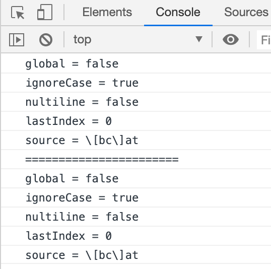 console.log("ignoreCase = " + pattern2.ignoreCase);