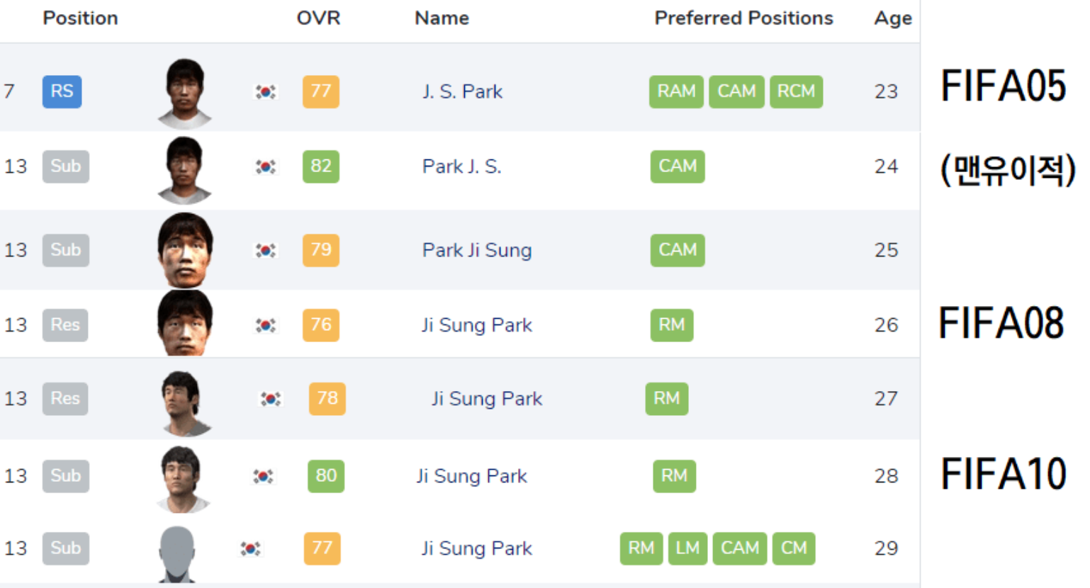 14년도의 박지성과 2002년 박지성이 다른 것처럼 말이다.