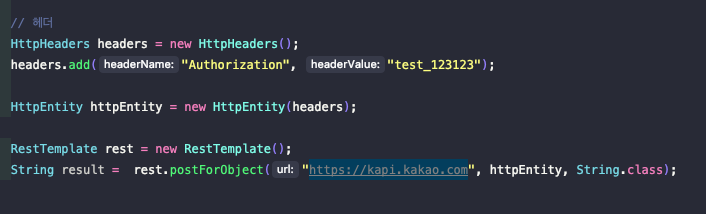 하지만, Header 부터해서 httpEntity 까지 소스 코드가 너무 많이 들어간다는 단점이 있다.