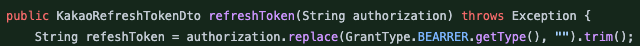 "Bearer key값" 형식으로 오는것을 key값만 받고 싶을 때 나는 replace 와 trim을 사용했다.